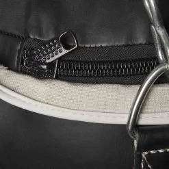 Made with extra-resistant synthetic leather, this heavy bag is an hand-crafted item. Internal padding guarantees antishock features. It also has a practical zip closure and hanging chains.